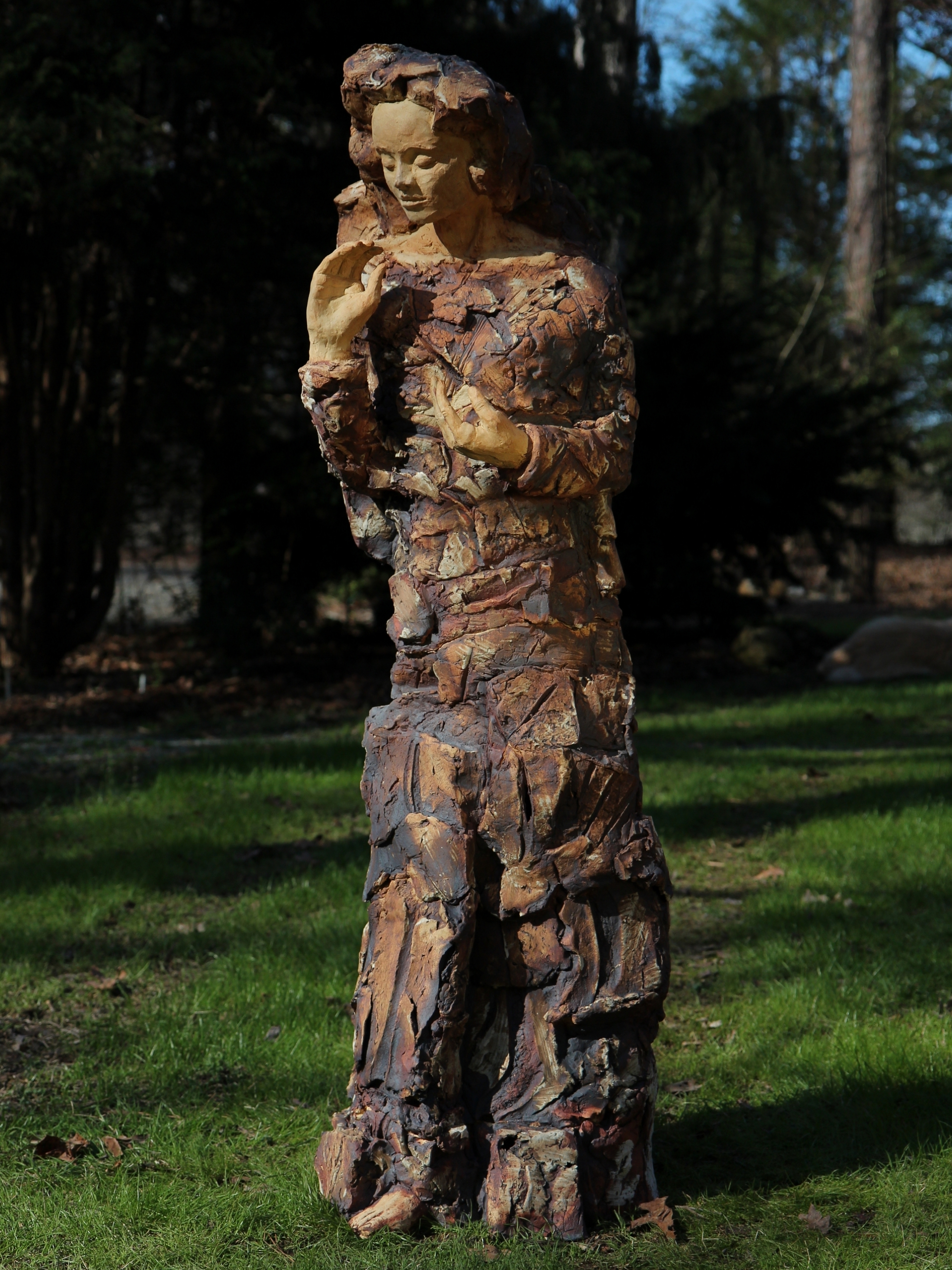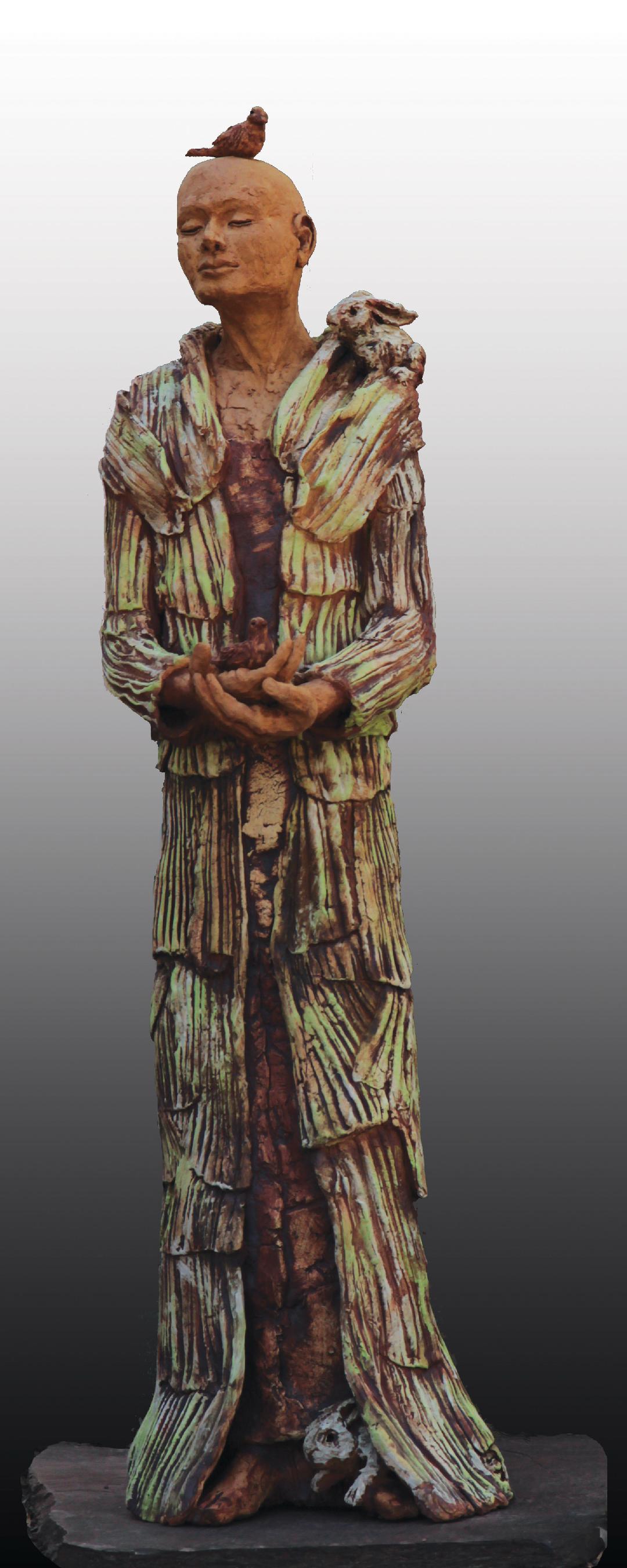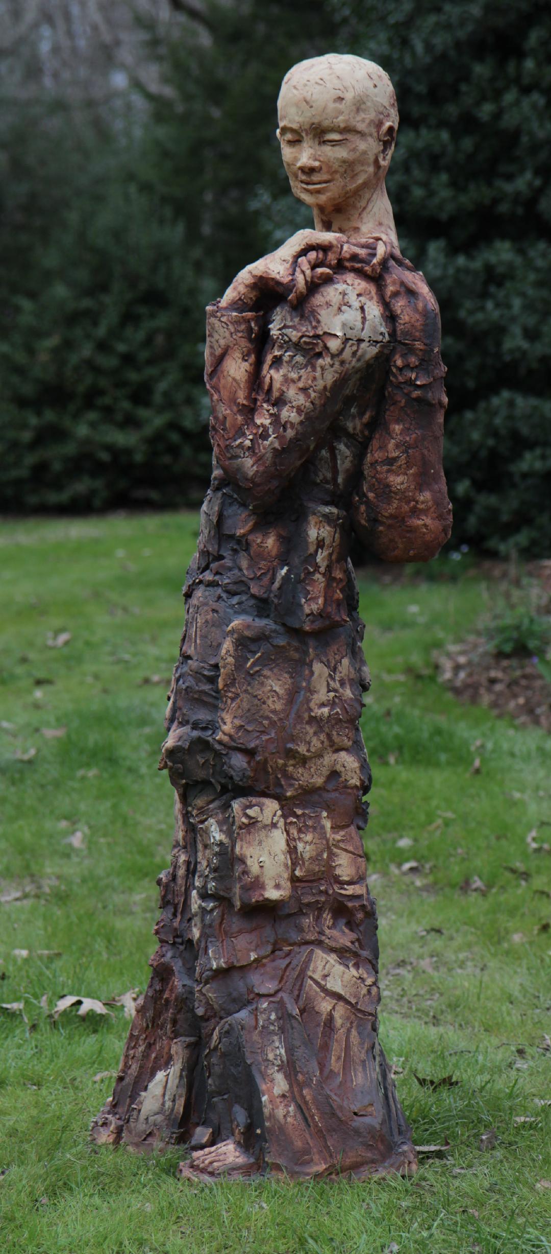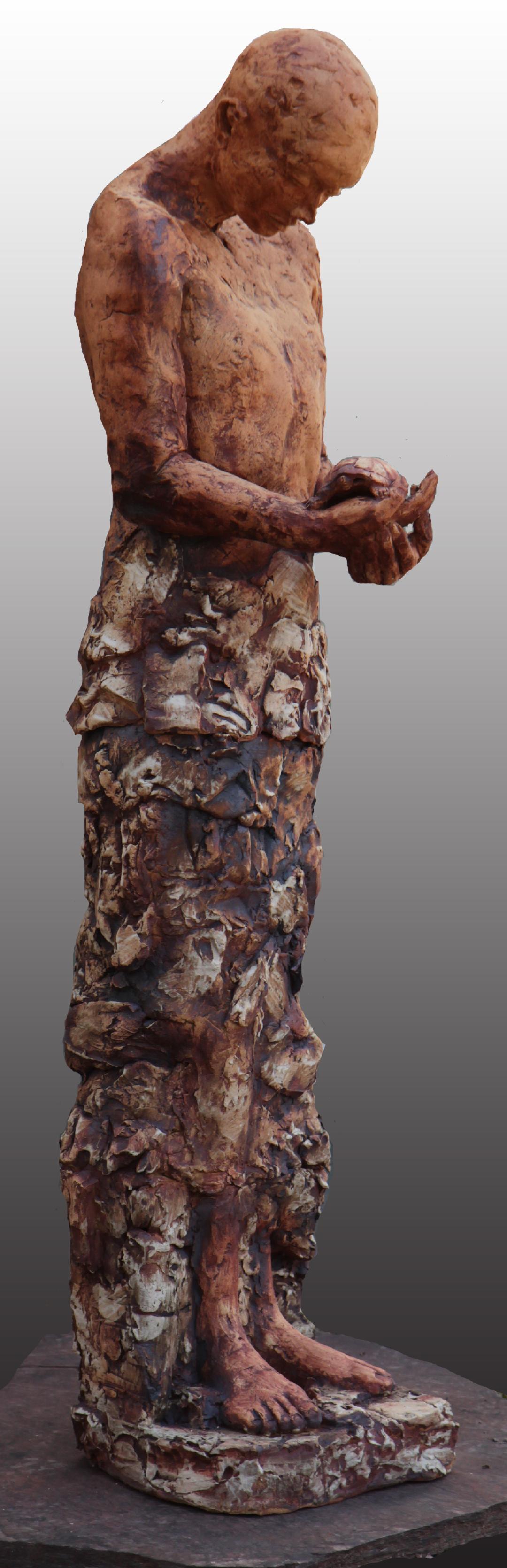“The surfaces of my sculptures are full of surface cracks, fissures and imperfections that express the earth, the passing of time, our mortality, and the search for spirituality. I work on them until they look back at me.